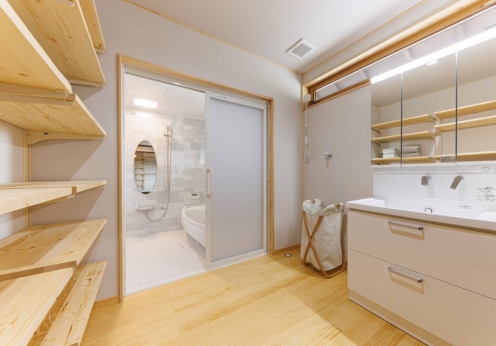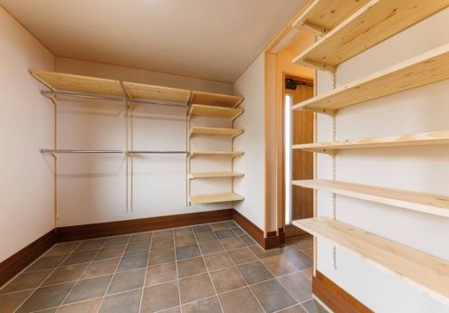 ●キッチン⇔洗面・トイレの通路にパントリーを設けて収納を充実させる