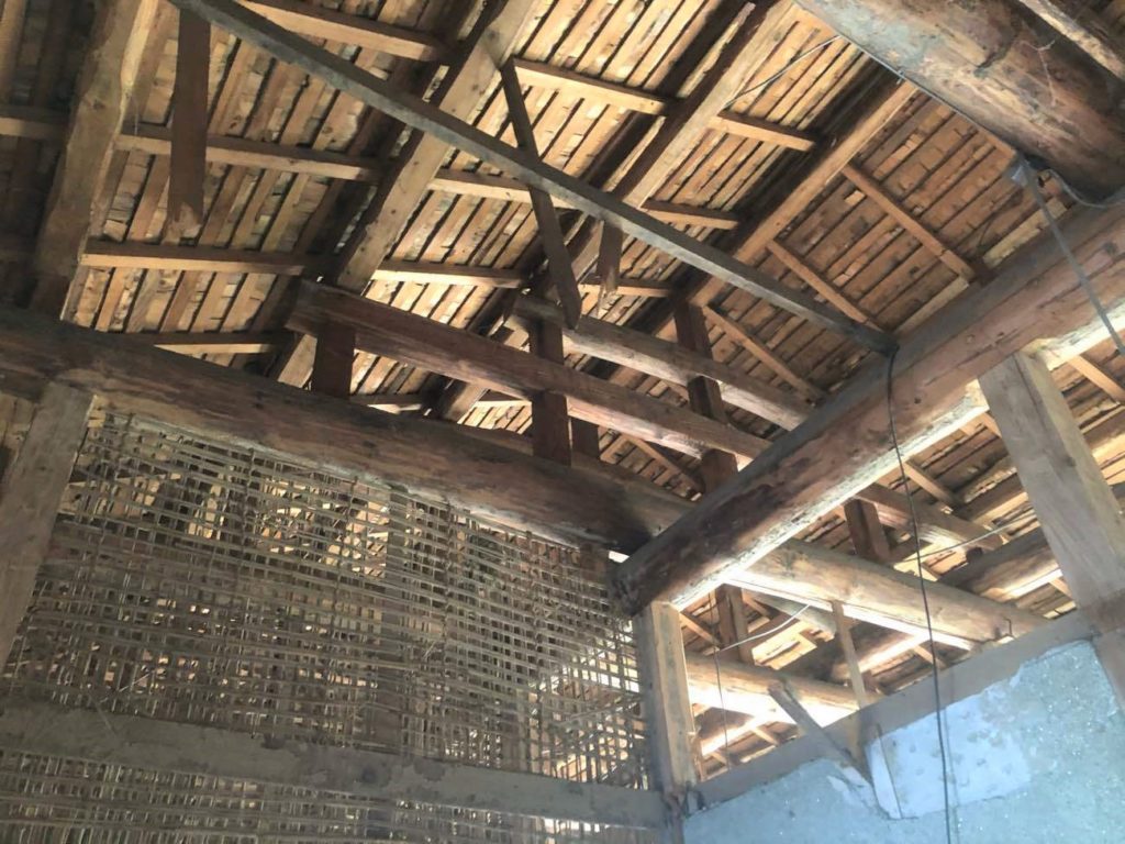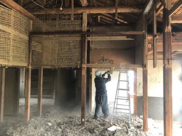 壁は、伝統工法の土壁で、丁寧に木舞が組まれていました。