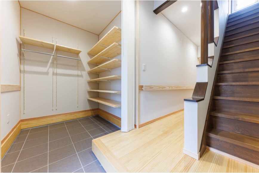 ●シューズクロークを大きく取り、自転車やベビーカーも収納できるようにする