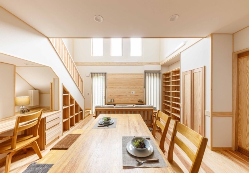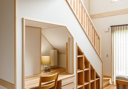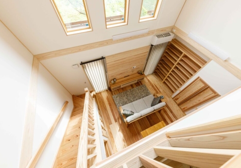 吹き抜けから各階へ空気が移動するため、エアコン1台の稼働で家中快適に過ごすことができます。