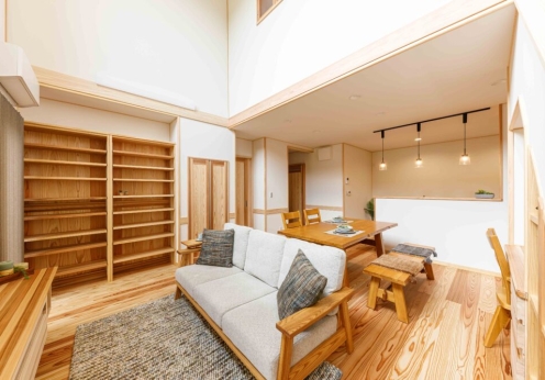 生活スタイル・家族構成からほとんど不要になる2階の1部屋を減築し、吹き抜け構造へと改修しました。